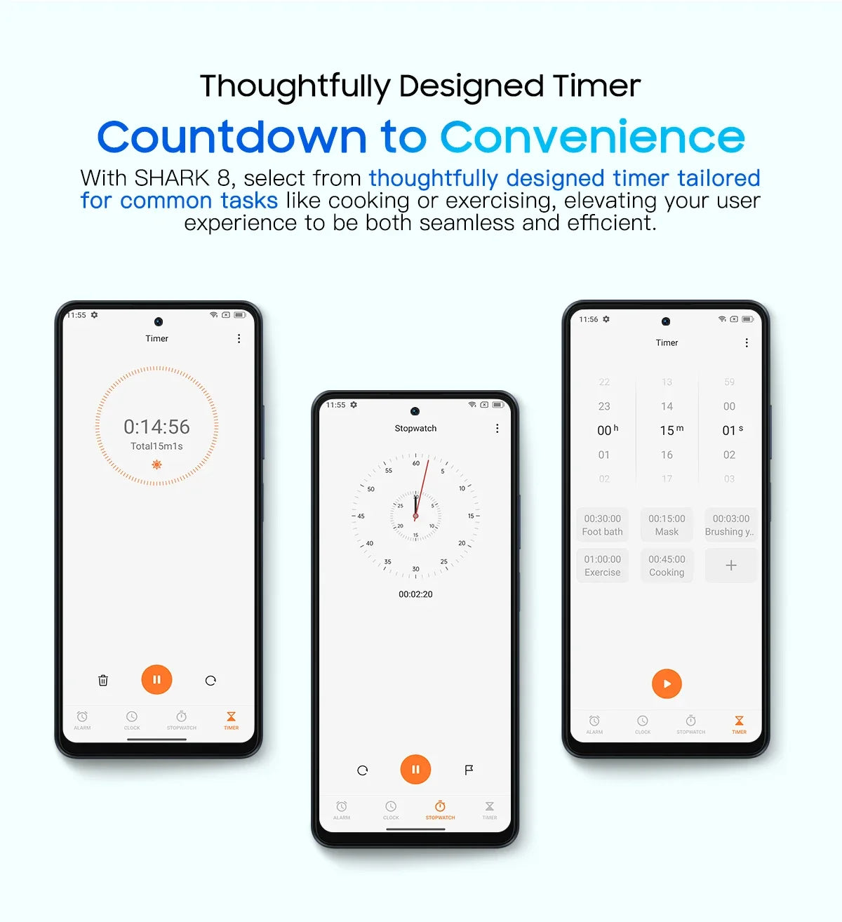 With SHARK 8, select from thoughtfully designed timer tailored for common tasks like cooking or exercising, elevating your user experience to be both seamless and efficient. Game Mode