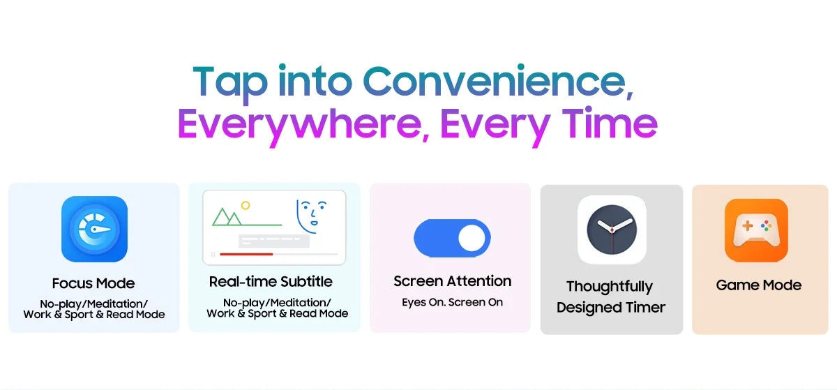 Stay immersed in your content without interruptions. With Screen Attention, your screen stays lit as long as you're looking, ensuring a smooth and uninterrupted experience. Thoughtfully Designed Timer
