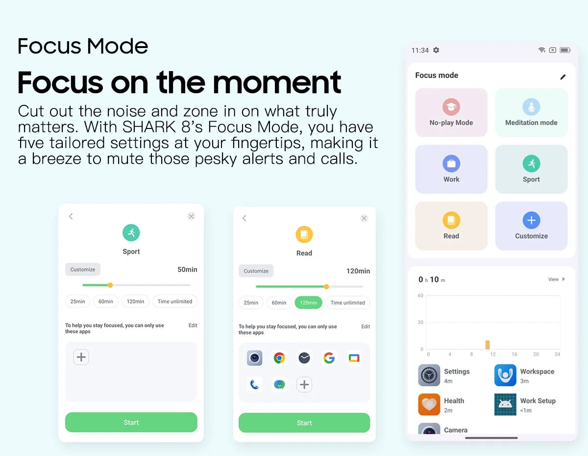 Cut out the noise and zone in on what truly matters. With SHARK 8's Focus Mode, you have five tailored settings at your fingertips, making it a breeze to mute those pesky alerts and calls.