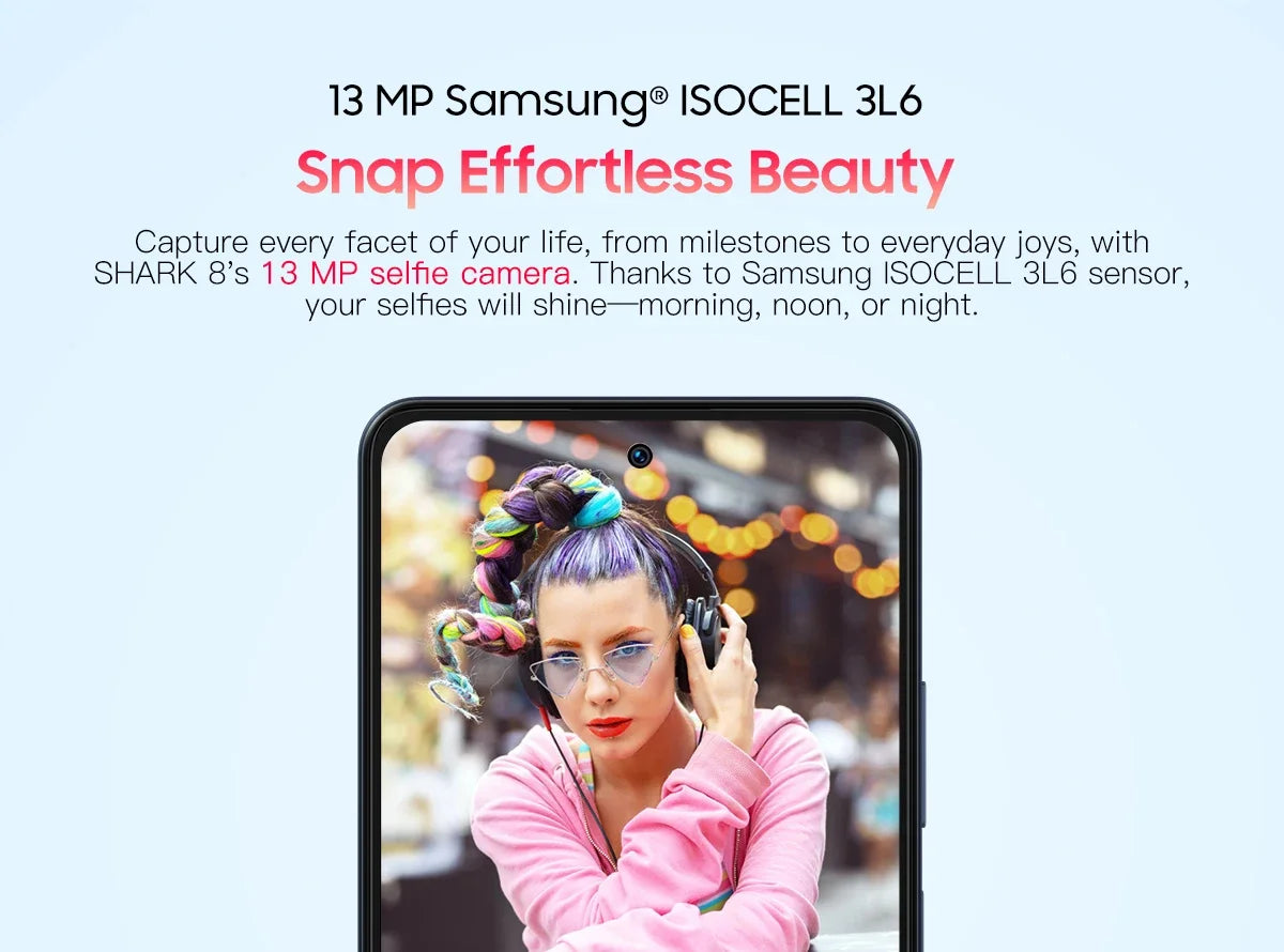 With its fine-tuned Pro Mode, SHARK 8's camera system offers intuitive controls, letting you take breathtaking photos in your daily moments.