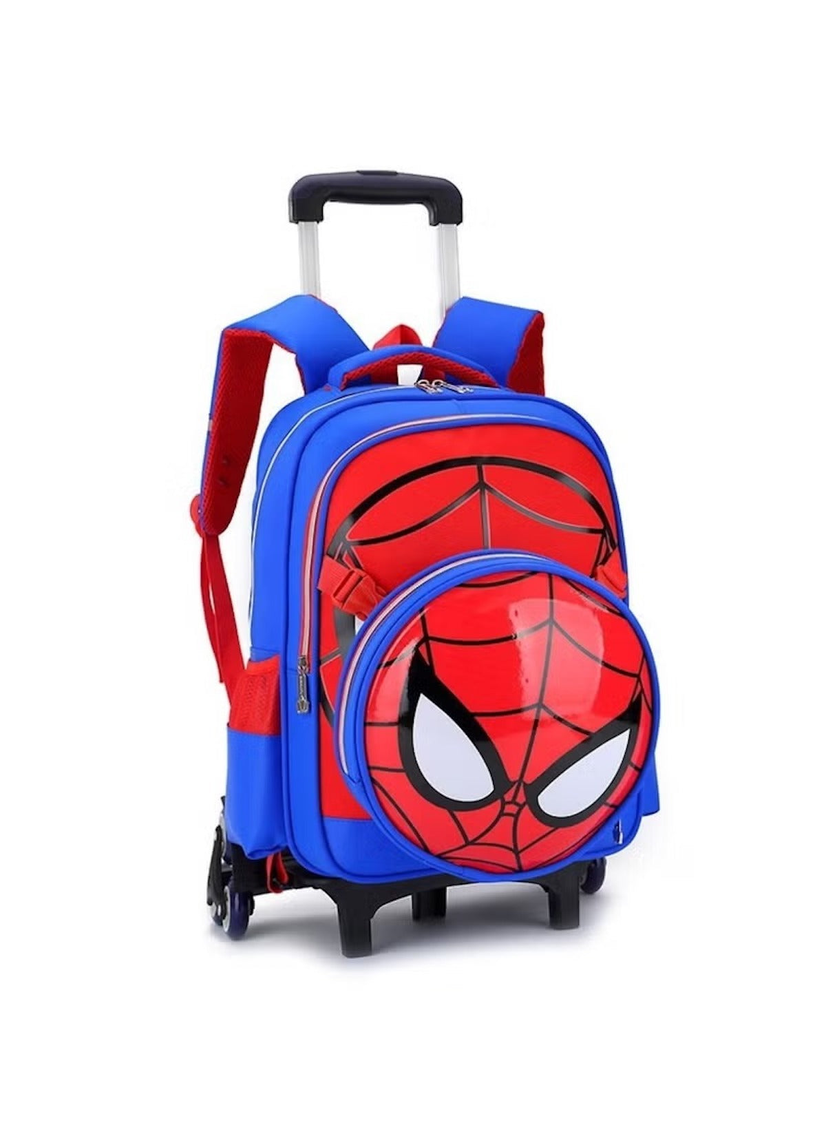 Make every school day a heroic adventure with the Blue Spider-Man Rolling Trolley School Bag. Designed for young Marvel fans, this stylish and durable bag features a striking Spider-Man print in bold red and blue. Its six-wheel trolley system ensures smooth movement and stability, while multiple compartments keep books, stationery, and lunch neatly organized.