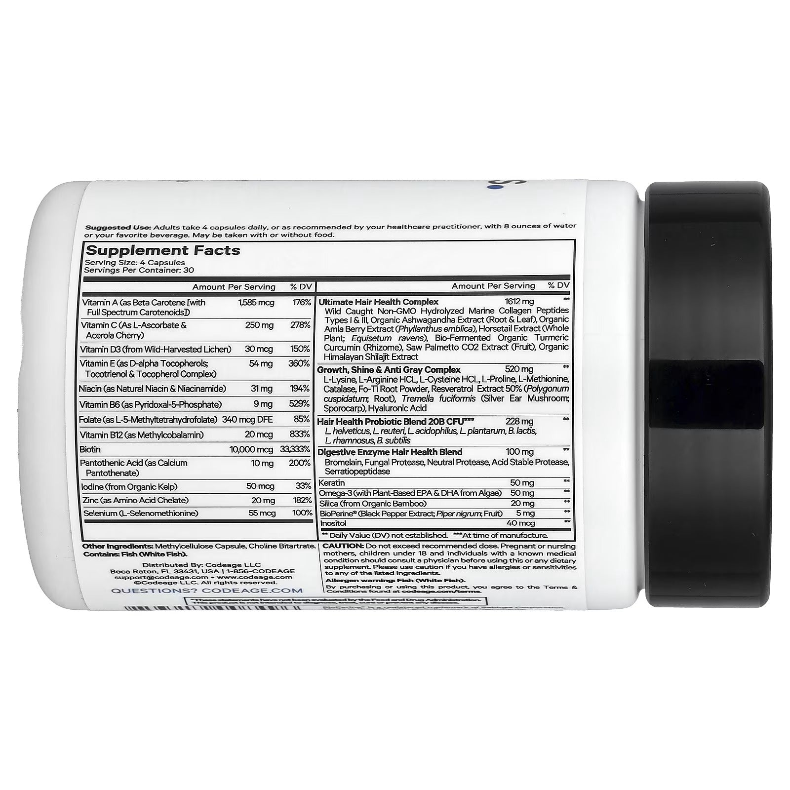 Codeage Hair Vitamins is a premium dietary supplement formulated to support healthy hair growth, strength, and overall scalp nourishment. This advanced formula combines essential vitamins, minerals, amino acids, and botanical extracts to help promote thicker, stronger, and healthier-looking hair for both men and women.