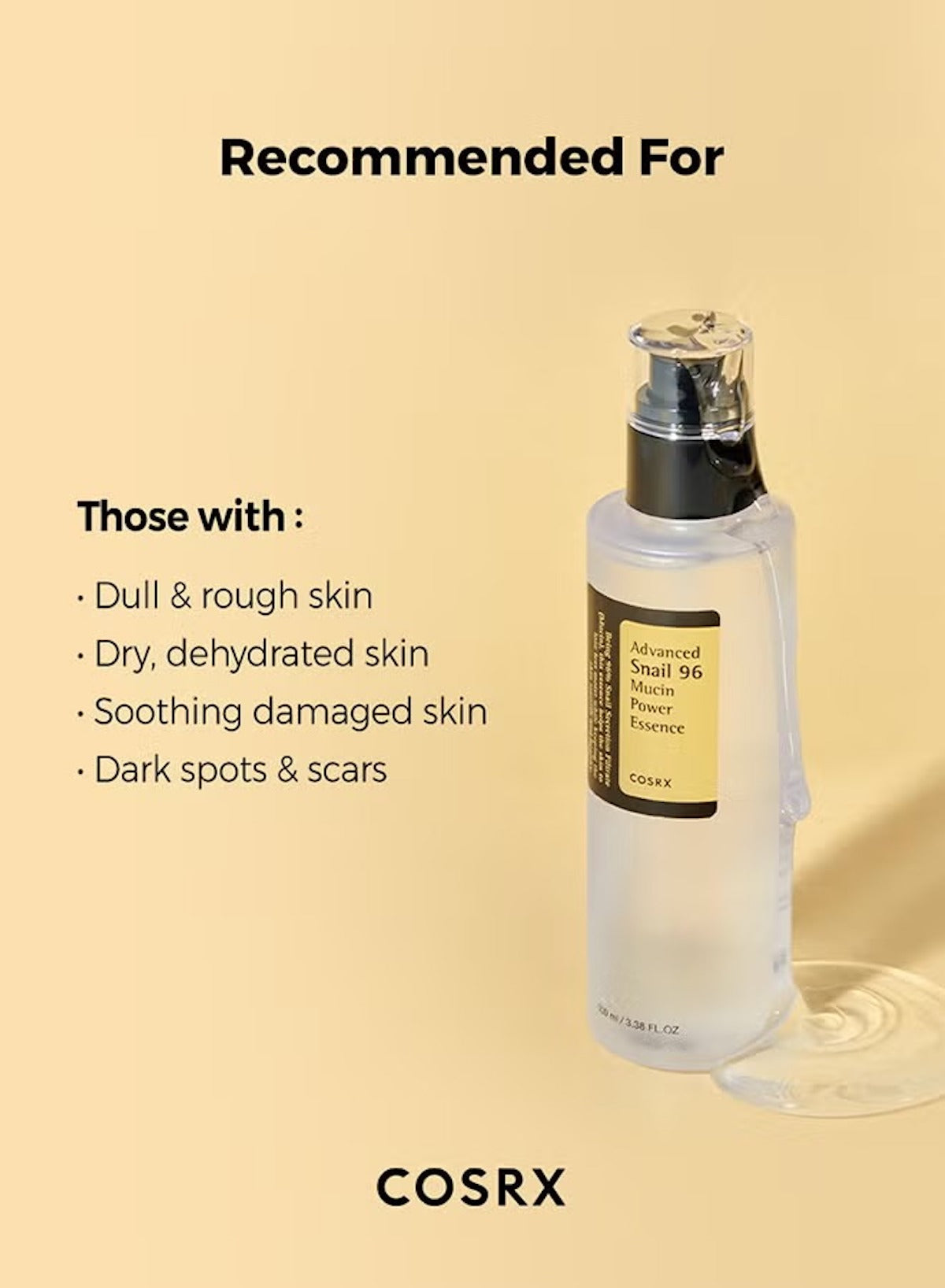 Revitalize your skin with the COSRX Advanced Snail 96 Mucin Power Essence, a cult-favorite K-beauty essential packed with 96% snail mucin extract.