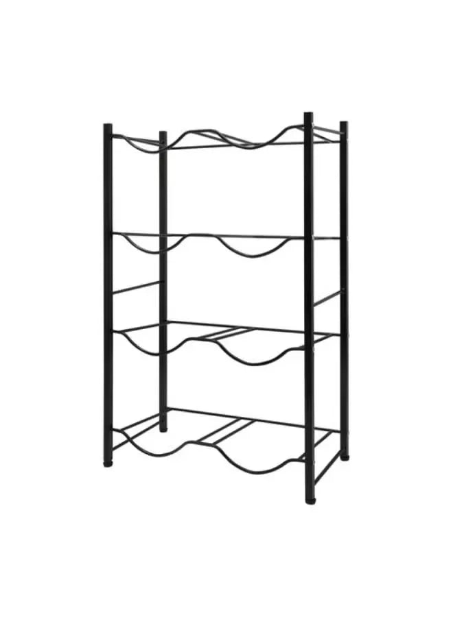 Organize and store large water bottles efficiently with this four-layer, double-row storage rack. Made from durable black metal, its vertical design saves space while providing stability. Ideal for homes, offices, kitchens, or commercial settings.