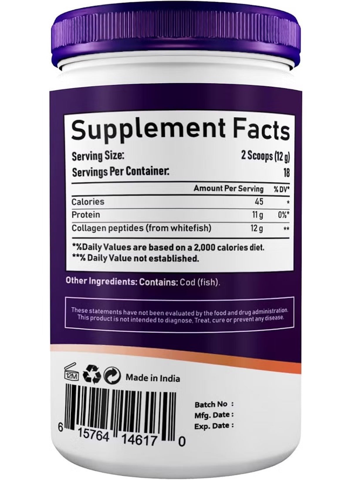 100% Pure Marine Collagen: Derived from wild-caught whitefish (cod), with no fillers or additives.