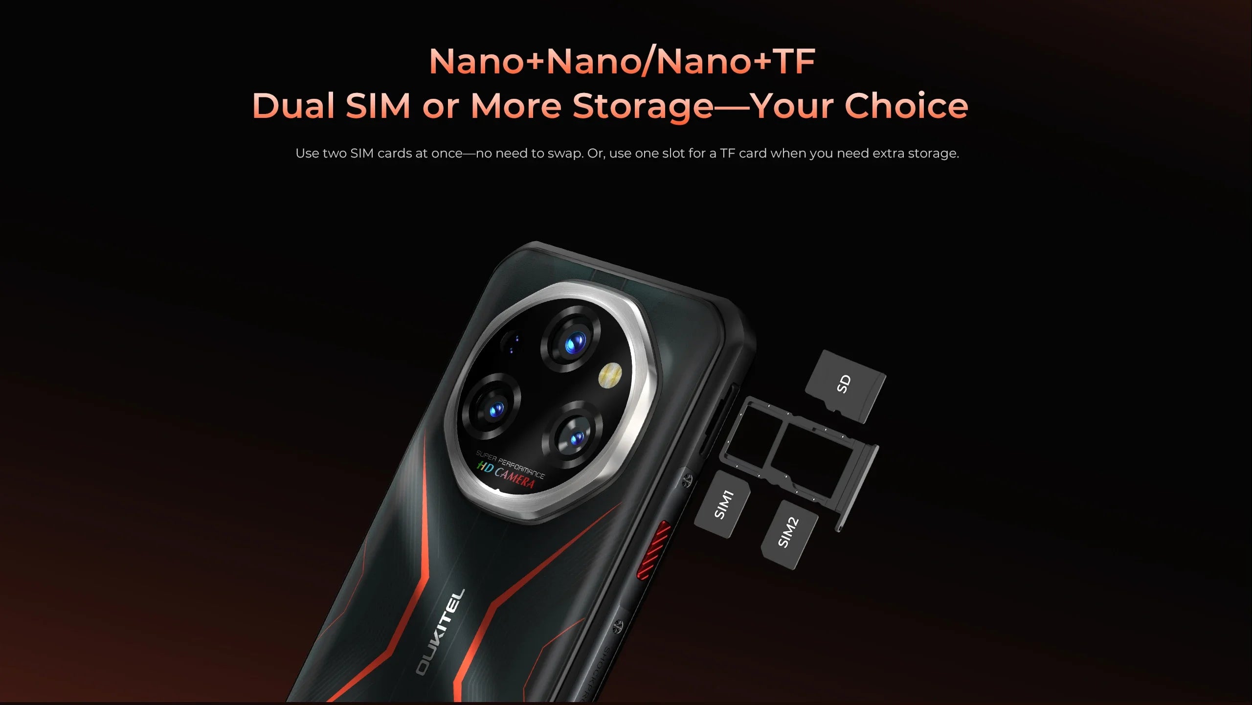 Use two SIM cards at onceno need to swap. Or, use one slot for a TF card when you need extra storage. More Impressive Features