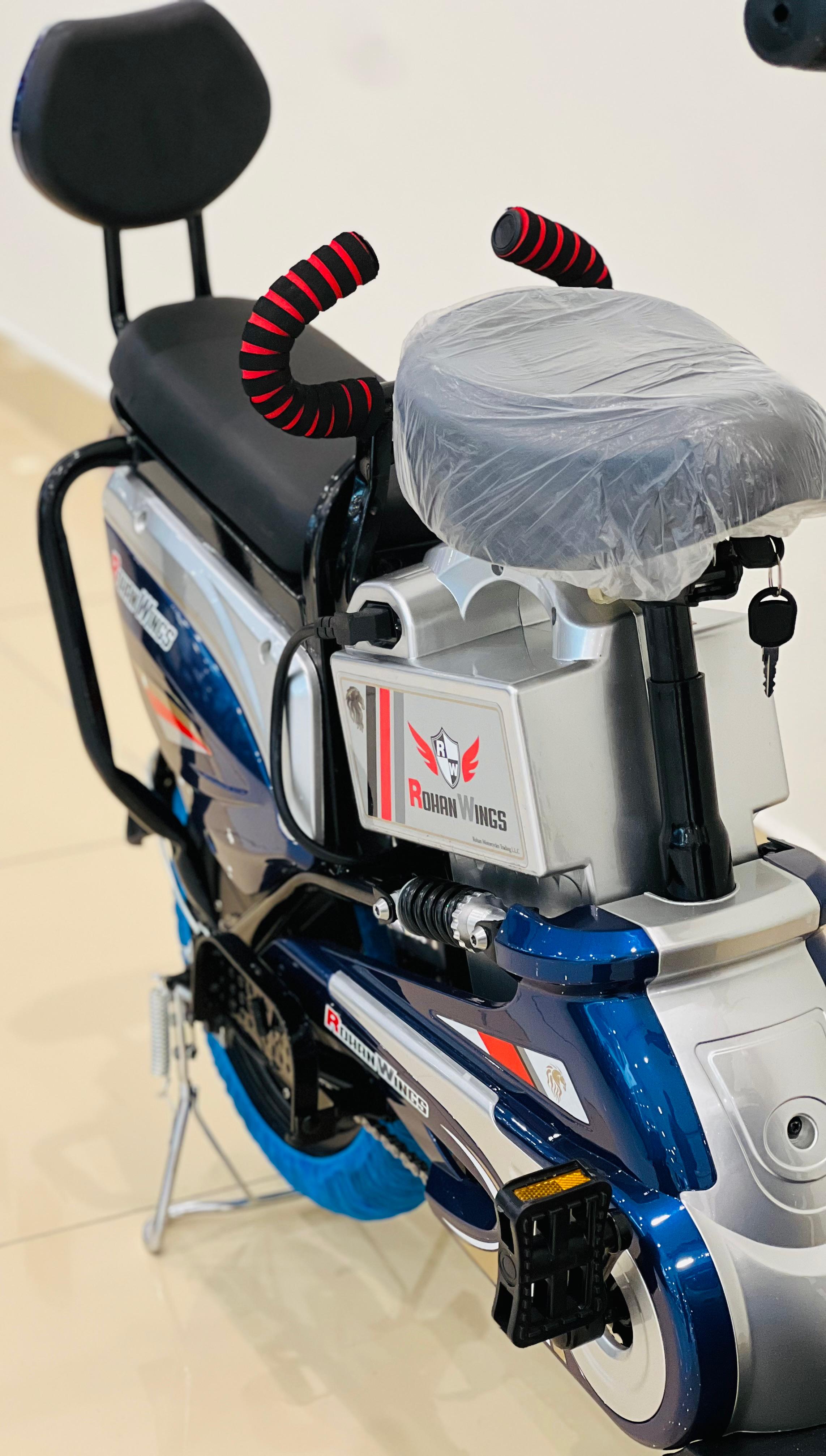 The RohaN Wings JML-4 Electric Scooter is built for reliable everyday performance with a perfect balance of speed, endurance, and stability. Equipped with a 48V 12Ah A-Plus acid battery and a 350W brushless motor, it ensures smooth acceleration and consistent power output. Its 14-inch tubeless tires deliver excellent grip and comfort, making it an ideal choice for both city rides and short-distance commuting.