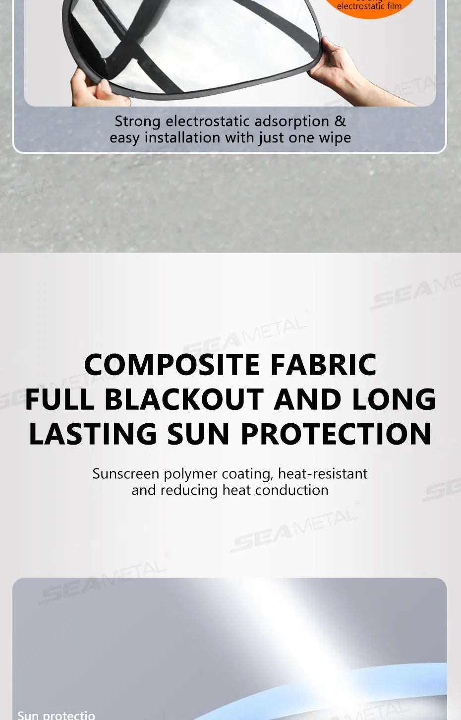 SEAMETAL Electrostatic Sun Visor for Car Side Window 4-Layer Sun Shade Curtains Anti-Glare UV-Blocker Auto Sun Protection Cover