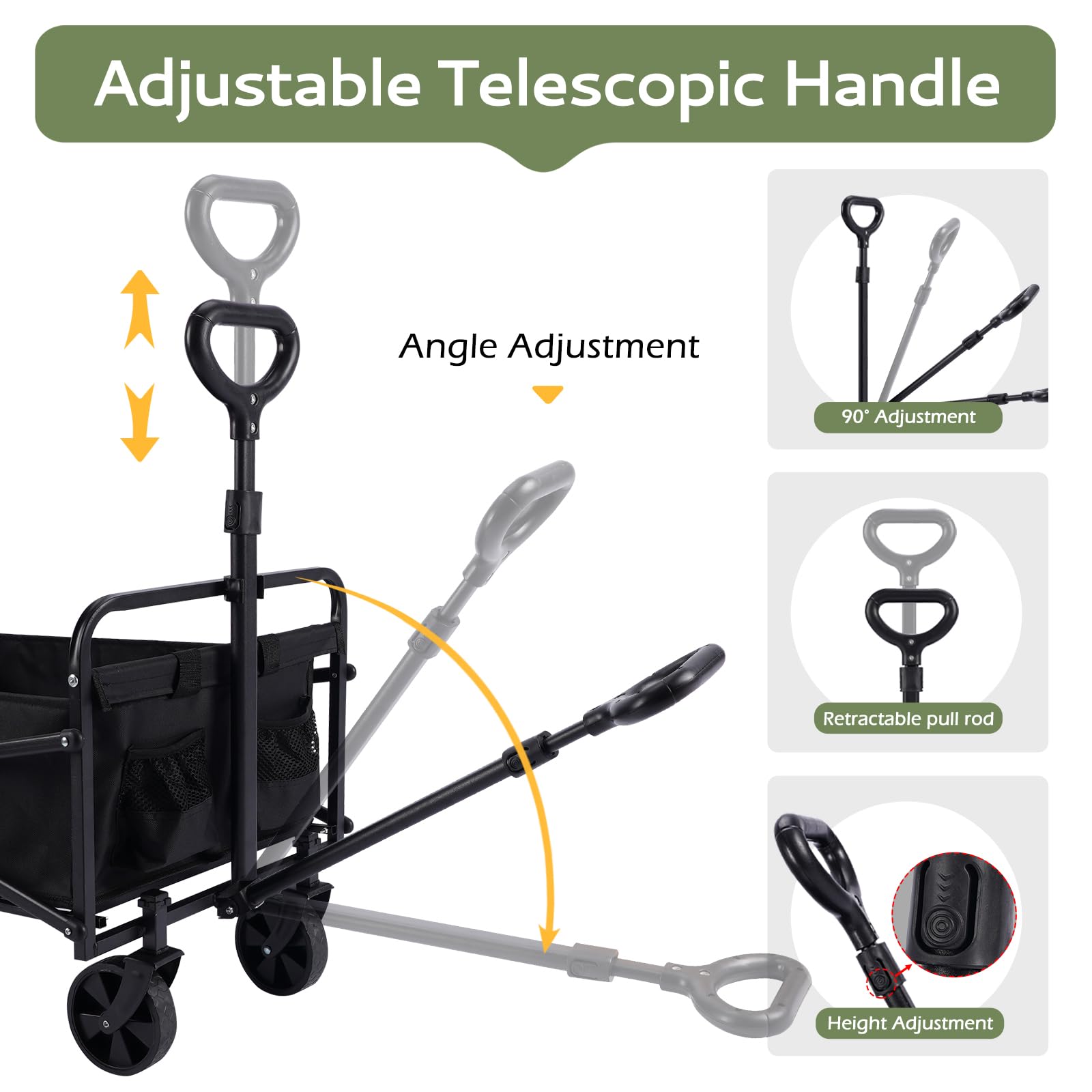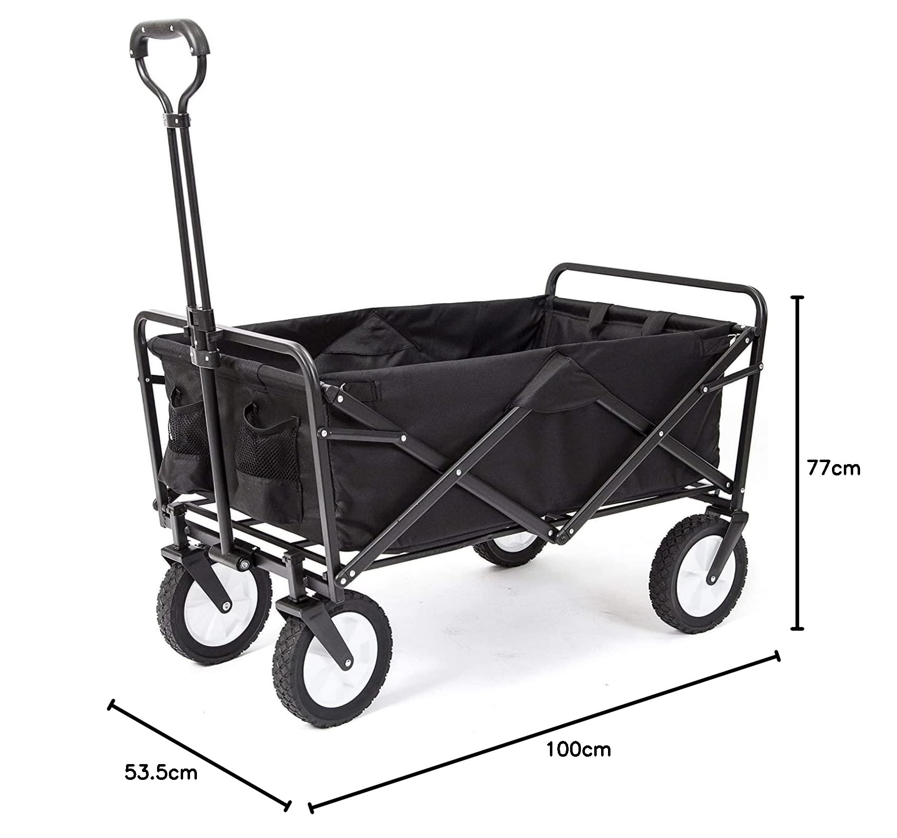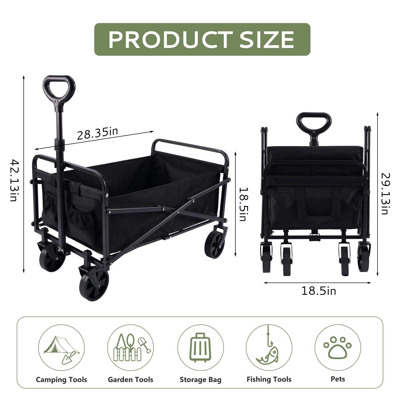 Garden Cart Folding Trolley Cart Outdoor Wagon Collapsible with Removable Fabric Festival Garden Camping Picnic Cart Supports Max 100kg Portable Transport Trailer (Black)