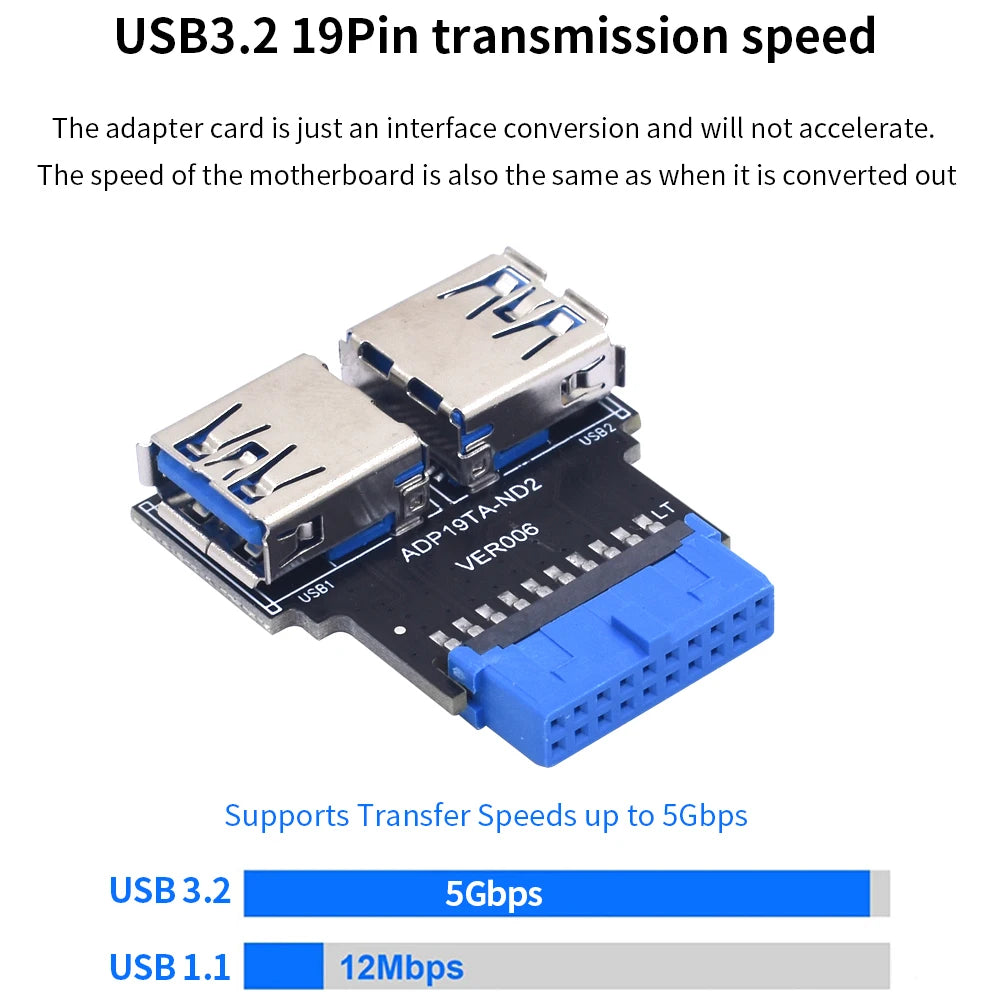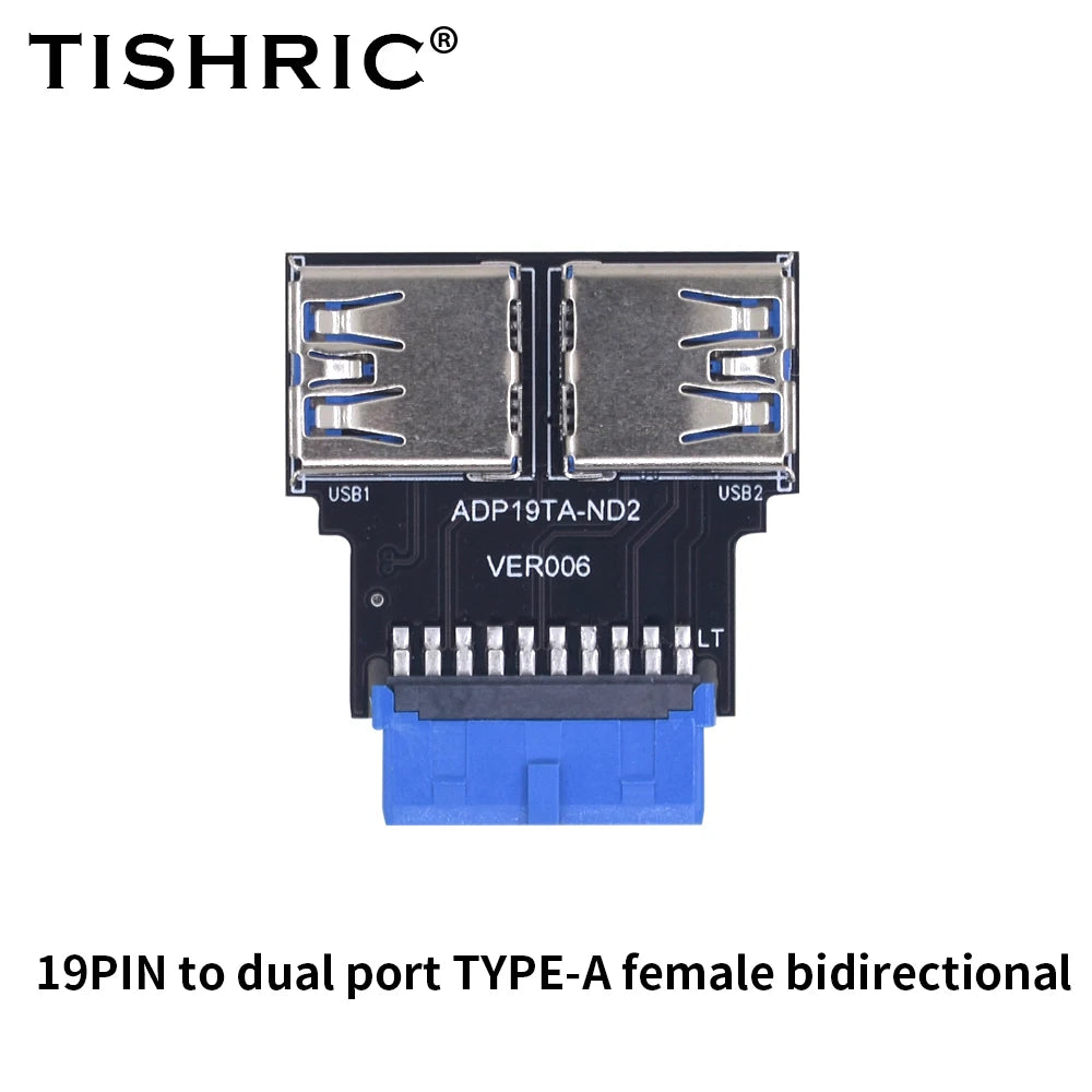 TISHRIC 19Pin To Type-C USB3.0 Converter Internal Header to USB 3.1/3.2 Type C Adapter for PC Motherboard Connector Riser
