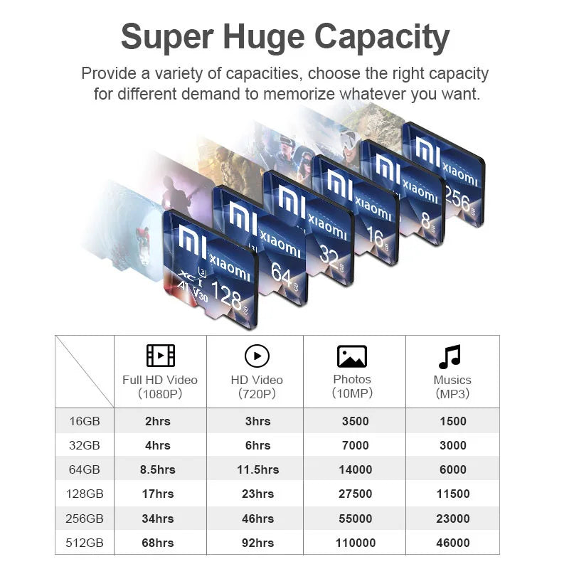 Features 15: High Capacity Memory Micro TF/SD Card 128gb