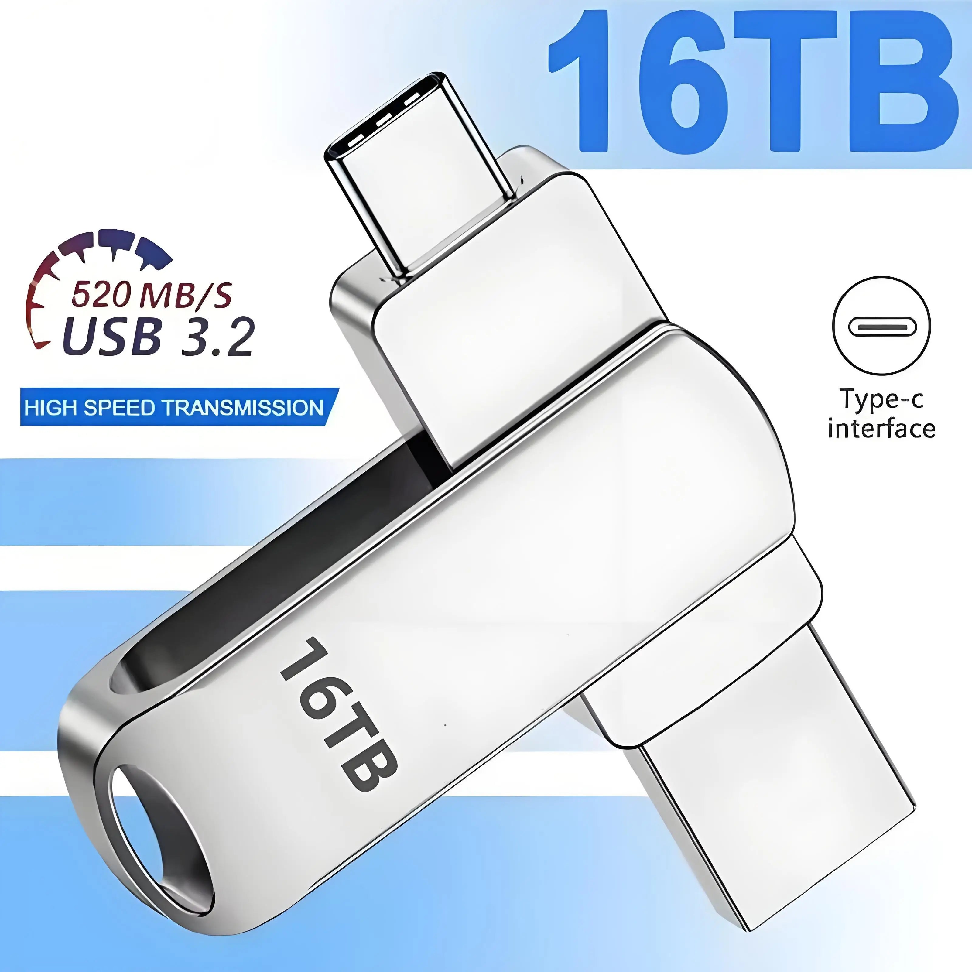 2025USB 3.2 16TB USB Flash Drive Memory Type-c 2-In-1 8TB 16TB OTG Pendrive 4TB High Speed Flash Disk 2TB For Computer Laptop